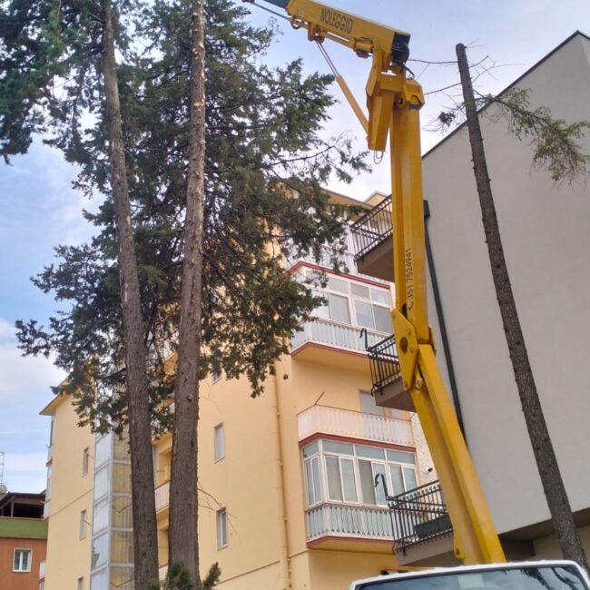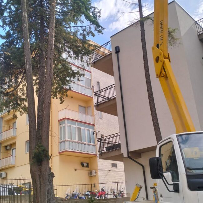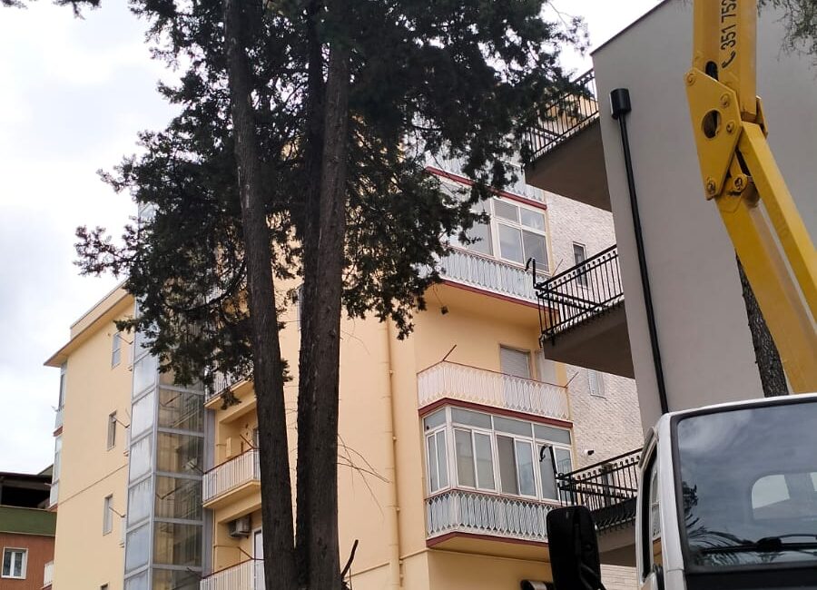 La potatura delle alberature è una pratica essenziale per mantenere la salute, la sicurezza e la produttività degli alberi, e consiste nella rimozione selettiva di rami secchi, malati o superflui per favorire la crescita e l’equilibrio della chioma. Il periodo migliore è il riposo vegetativo invernale (da novembre a marzo), l’intervento su tale conifera è stato necessario per garantire l’incolumità degli edifici limitrofi, avere più visibilità e più luce. Tale lavoro è stato eseguito rispettando tutte le norme di sicurezza e attrezzature moderne con l’ausilio di piattaforme e attrezzi da taglio automatizzati.