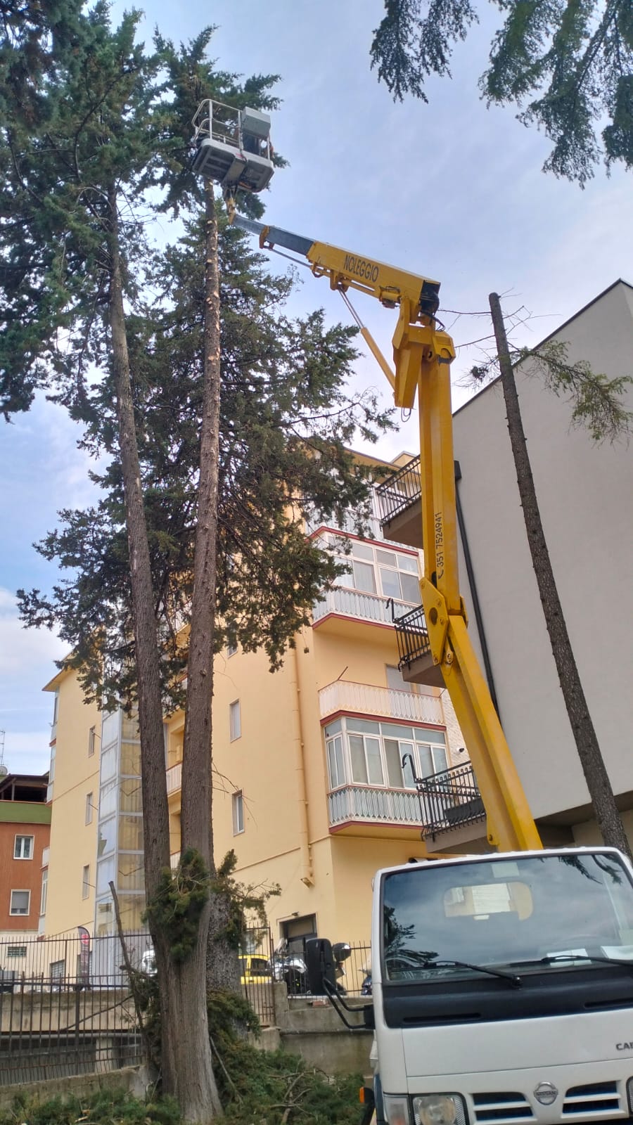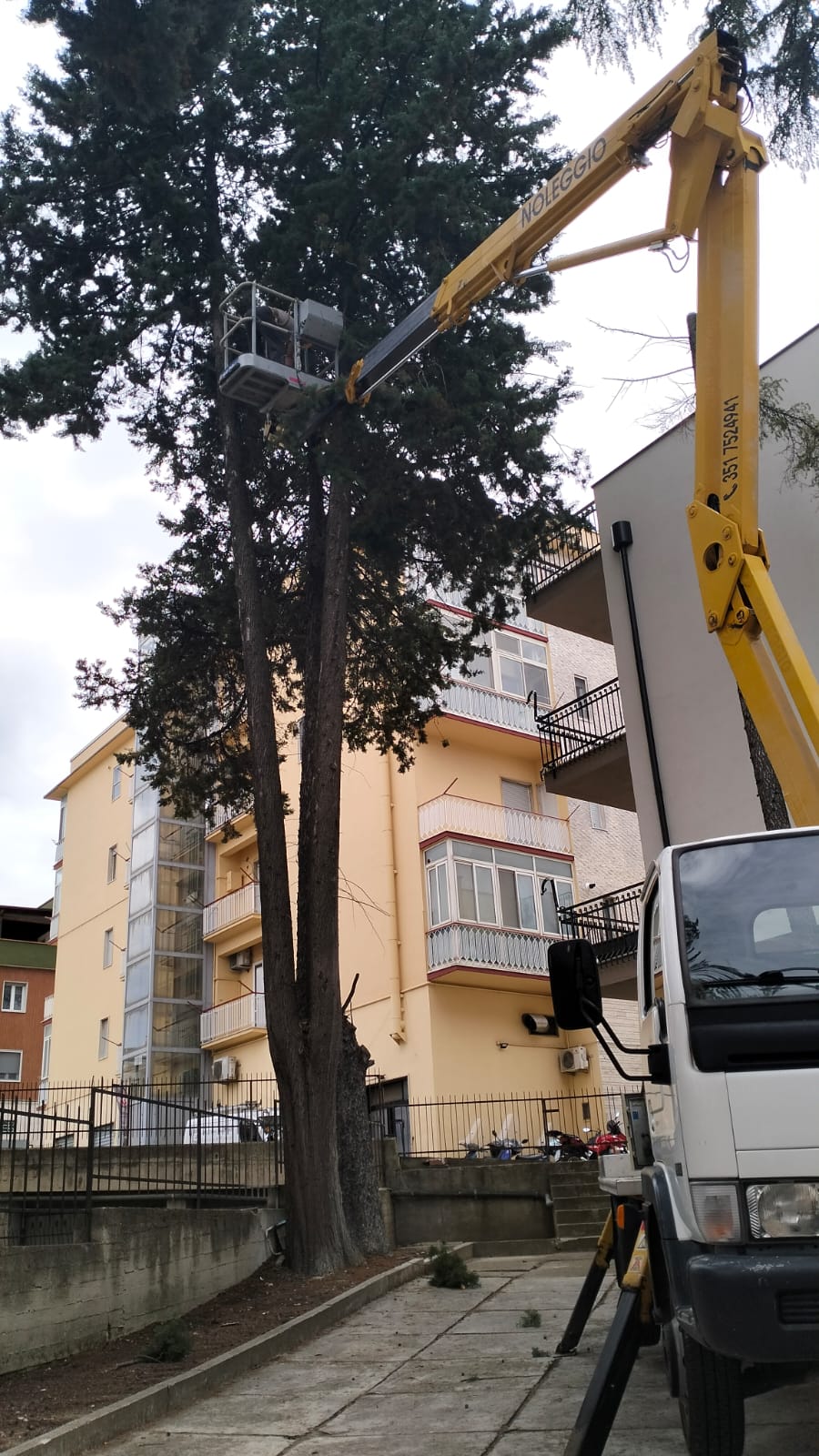 La potatura delle alberature è una pratica essenziale per mantenere la salute, la sicurezza e la produttività degli alberi, e consiste nella rimozione selettiva di rami secchi, malati o superflui per favorire la crescita e l’equilibrio della chioma. Il periodo migliore è il riposo vegetativo invernale (da novembre a marzo), l’intervento su tale conifera è stato necessario per garantire l’incolumità degli edifici limitrofi, avere più visibilità e più luce. Tale lavoro è stato eseguito rispettando tutte le norme di sicurezza e attrezzature moderne con l’ausilio di piattaforme e attrezzi da taglio automatizzati.